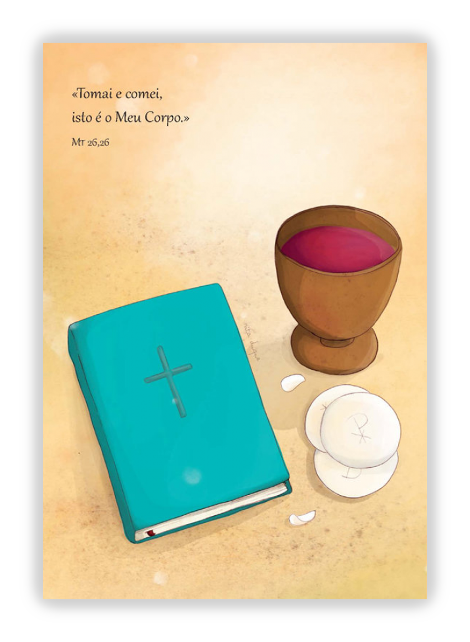 No verso: Espaço para preencher Nome/Paróquia/Data/Catequista e Celebrante