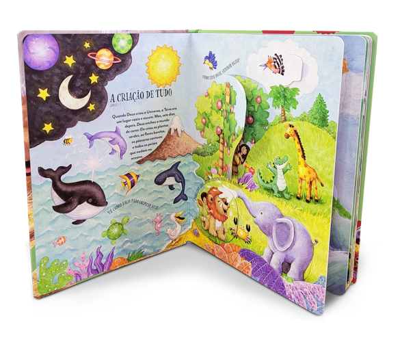A Minha Bíblia Favorita com janelas é o presente perfeito para crianças curiosas em descobrir as histórias da Bíblia.