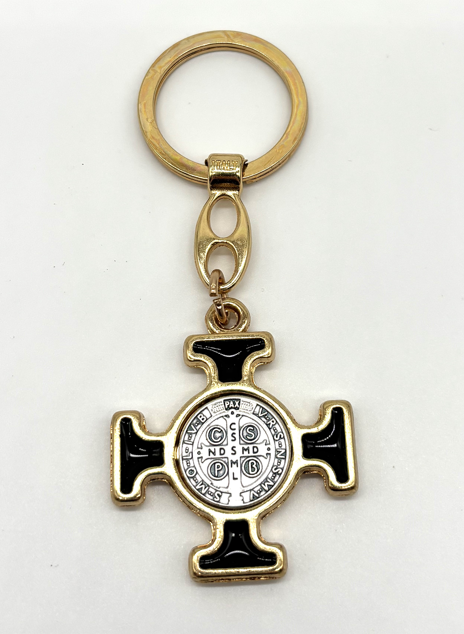 Este porta-chaves apresenta a tradicional Cruz de São Bento, reconhecida como um dos mais fortes sinais de proteção e fé na tradição cristã. Ao centro, encontra-se a medalha de São Bento, rica em simbolismo, com inscrições que evocam a proteção contra o mal e a confiança no poder de Cristo.